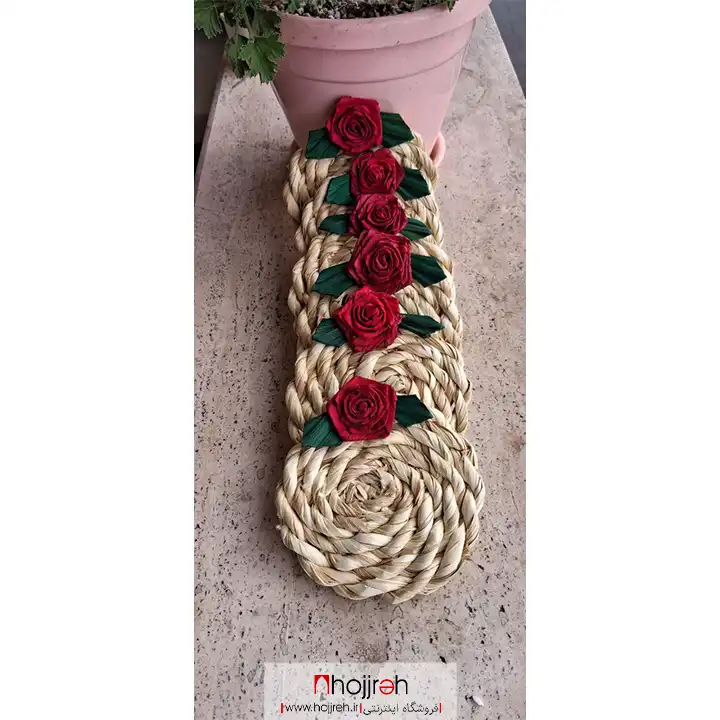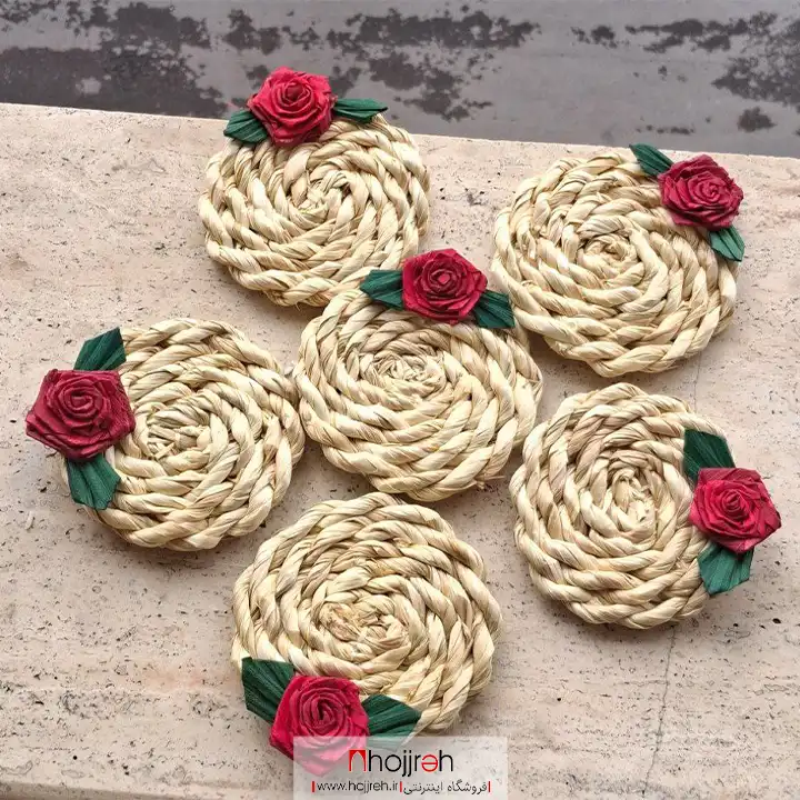 زیر بشقابی حصیری ربان دوزی شده طرح گل کد SNV37